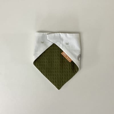 Slabbetje uit 100% katoen en badstof met velcro-sluiting. Afmeting 35cmx24cm.